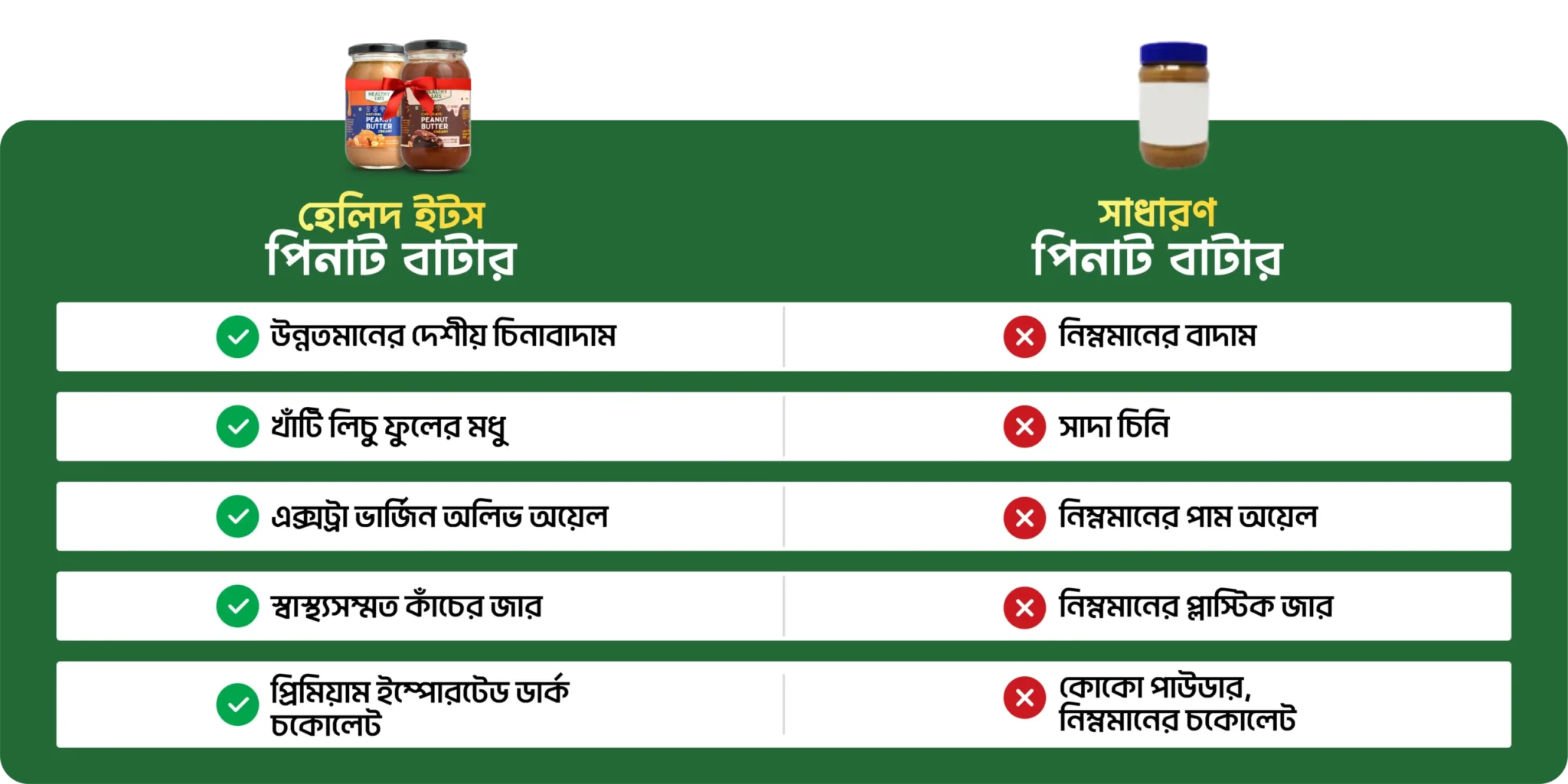 আমাদের পিনাট বাটারে কোনো প্রিজারভেটিভ বা কেমিক্যাল ব্যবহার করা হয় না, কারণ আমরা পণ্যকে একদম প্রাকৃতিক রাখার চেষ্টা করি। সাধারণ তাপমাত্রায় এটি ৪ মাস এবং ফ্রিজে রাখলে ৬ মাসেরও বেশি সময় ভালো থাকবে।